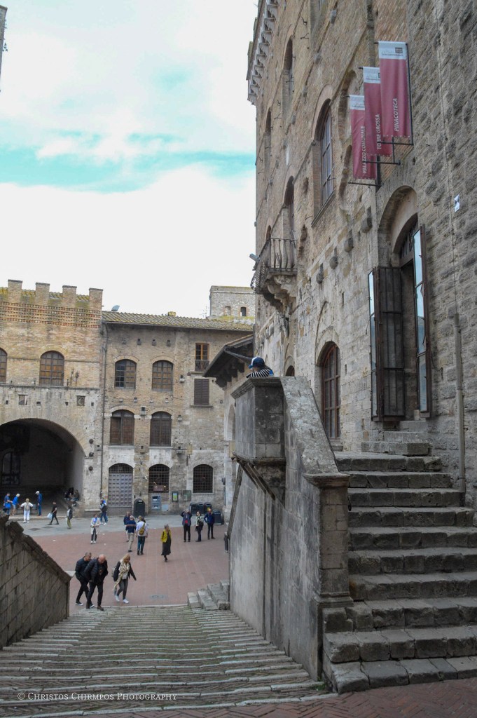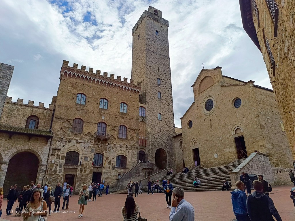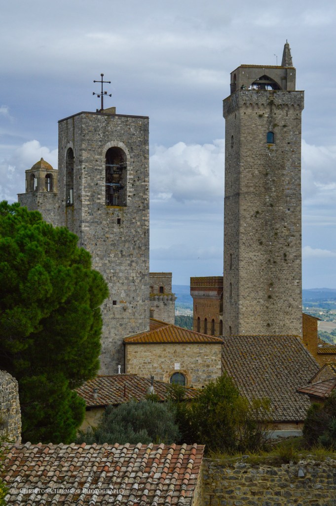 Πρωινό και αναχωρούμε για το φημισμένο Σαν Τζιμινιάνο (San Gimignano), το «Μανχάταν» της Τοσκάνης. Ψηλοί, αγέρωχοι πύργοι – σύμβολα δόξας, πλούτου και αντιπαράθεσης μεταξύ οικογενειών, όταν η κάθε μία ανταγωνιζόμενη την άλλη, έκτιζε τον ένα πύργο ψηλότερο απ’ τον άλλο – μας καλωσορίζουν από μακριά, δίνοντας στην πόλη μια παραμυθένια όψη.