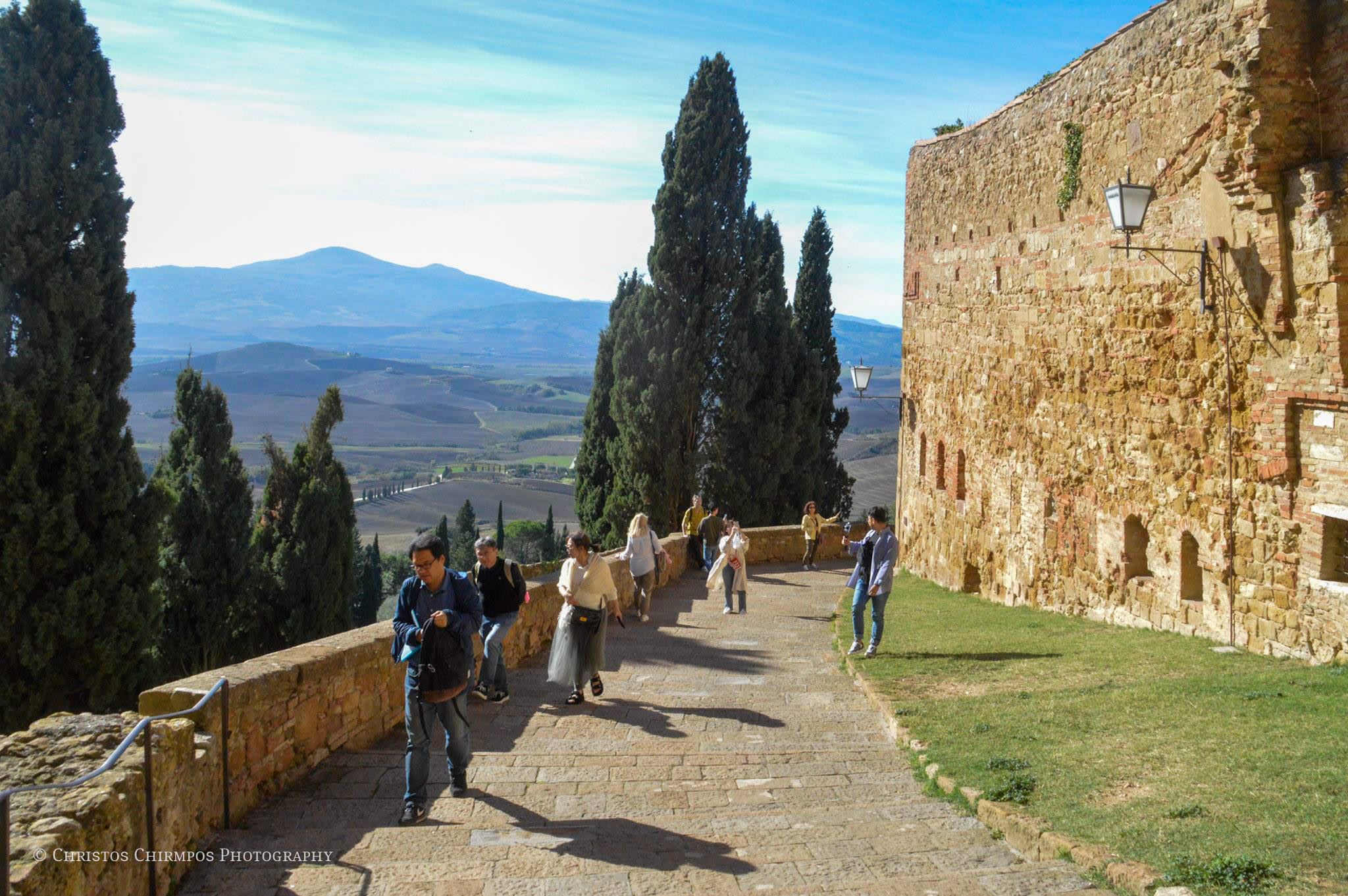 Βρισκόμαστε στην κοιλάδα της Βαλ ντ’ Όρτσια (Val d’Orchia), ίσως το ομορφότερο κομμάτι της Τοσκάνης, με τους πολυφωτογραφημένους λόφους που είναι γεμάτοι με αμπέλια. Στην κοιλάδα αυτή έχουν γυριστεί και αρκετές γνωστές ταινίες όπως ο Μονομάχος με τον Ράσελ Κρόου και ο Άγγλος Ασθενής που έχουν βραβευτεί και οι δυο με το όσκαρ καλύτερης ταινίας.