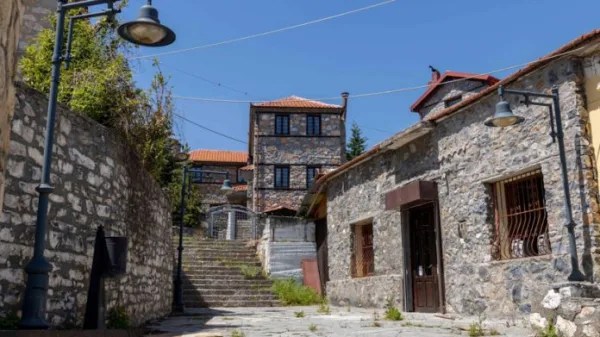 χωριό με κεραμοσκεπή κτήρια, που συνδυάζεται απόλυτα με το φυσικό τοπίο της περιοχής. Λιθόστρωτα σοκάκια µαγεύονται από τα πέτρινα κτίρια -δείγµατα της παραδοσιακής τοπικής αρχιτεκτονικής- όπως το παλιό