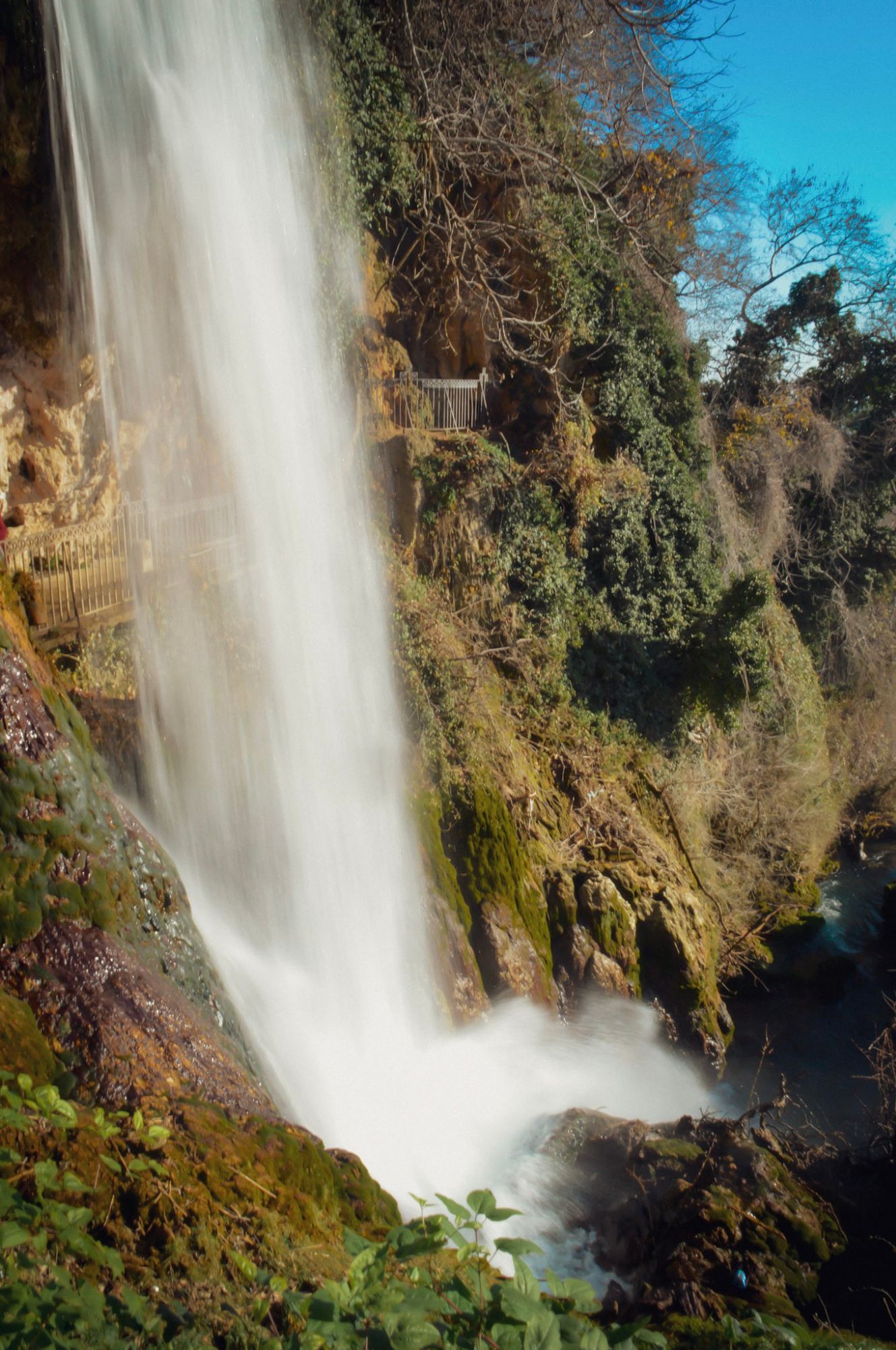Το όνομα της σημαίνει «Πύργος μέσα στο νερό» λόγω της παρουσίας του έντονου υγρού στοιχείου στην πόλη από τα αρχαία χρόνια. Θα έχουμε ελεύθερο χρόνο να θαυμάσουμε τους ορμητικούς καταρράκτες και να βγάλουμε φωτογραφίες το μαγευτικό τοπίο. Εκεί όπου το πάρκο των καταρρακτών συναντά την άκρη του βράχου, ή όπως αλλιώς λέγεται «το φρύδι της πόλης», βρίσκεται σύμφωνα με τον μεγάλο Έλληνα συγγραφέα Μενέλαο Λουντέμη, “το σκαλοπάτι όπου πατά ο Θεός για να ανέβει στον ουρανό”. Το νερό των καταρρακτών προέρχεται από τις πηγές που τροφοδοτούνται από τα χιόνια του όρους Καϊμάκτσαλαν (ή Βόρας).