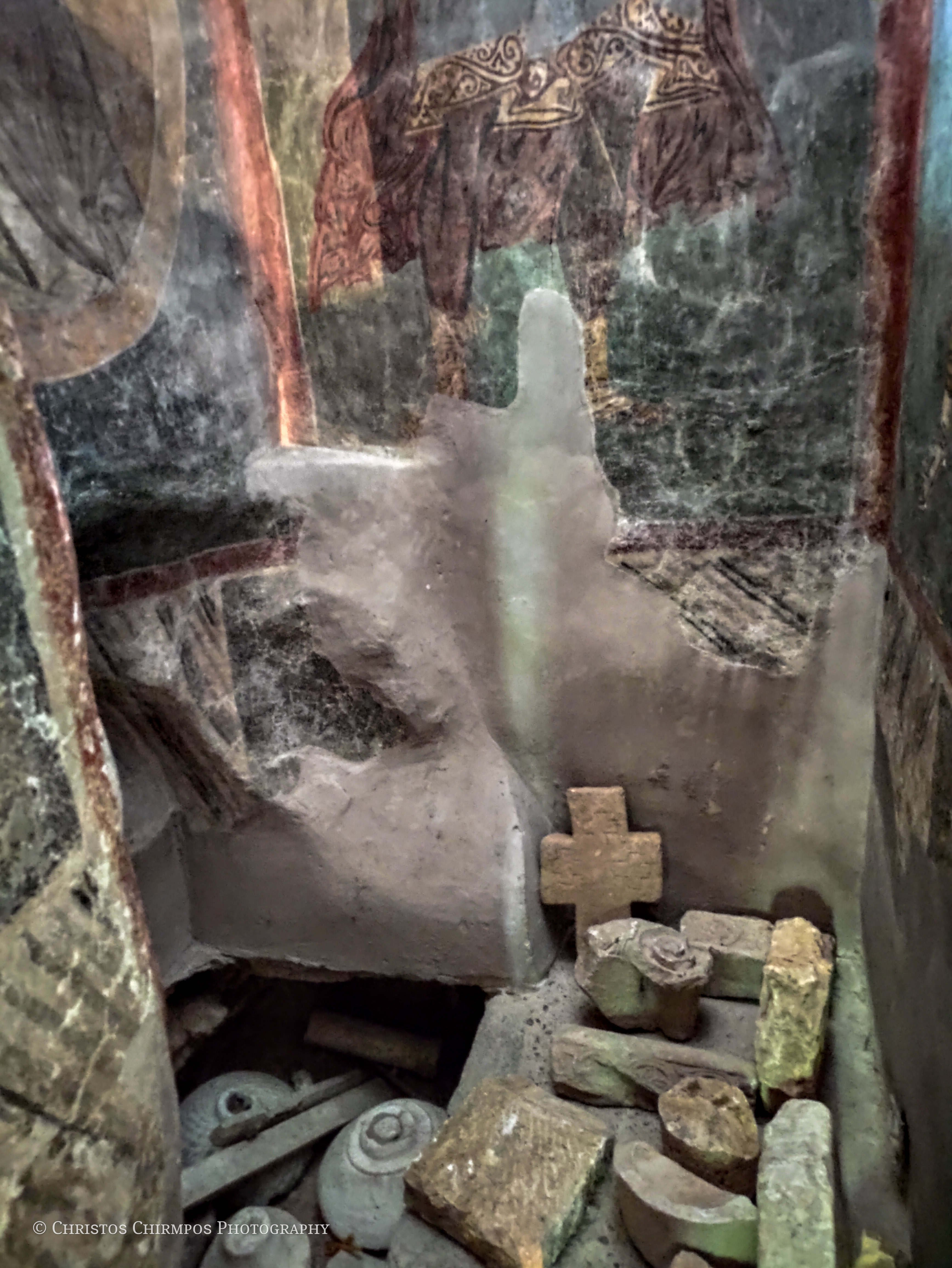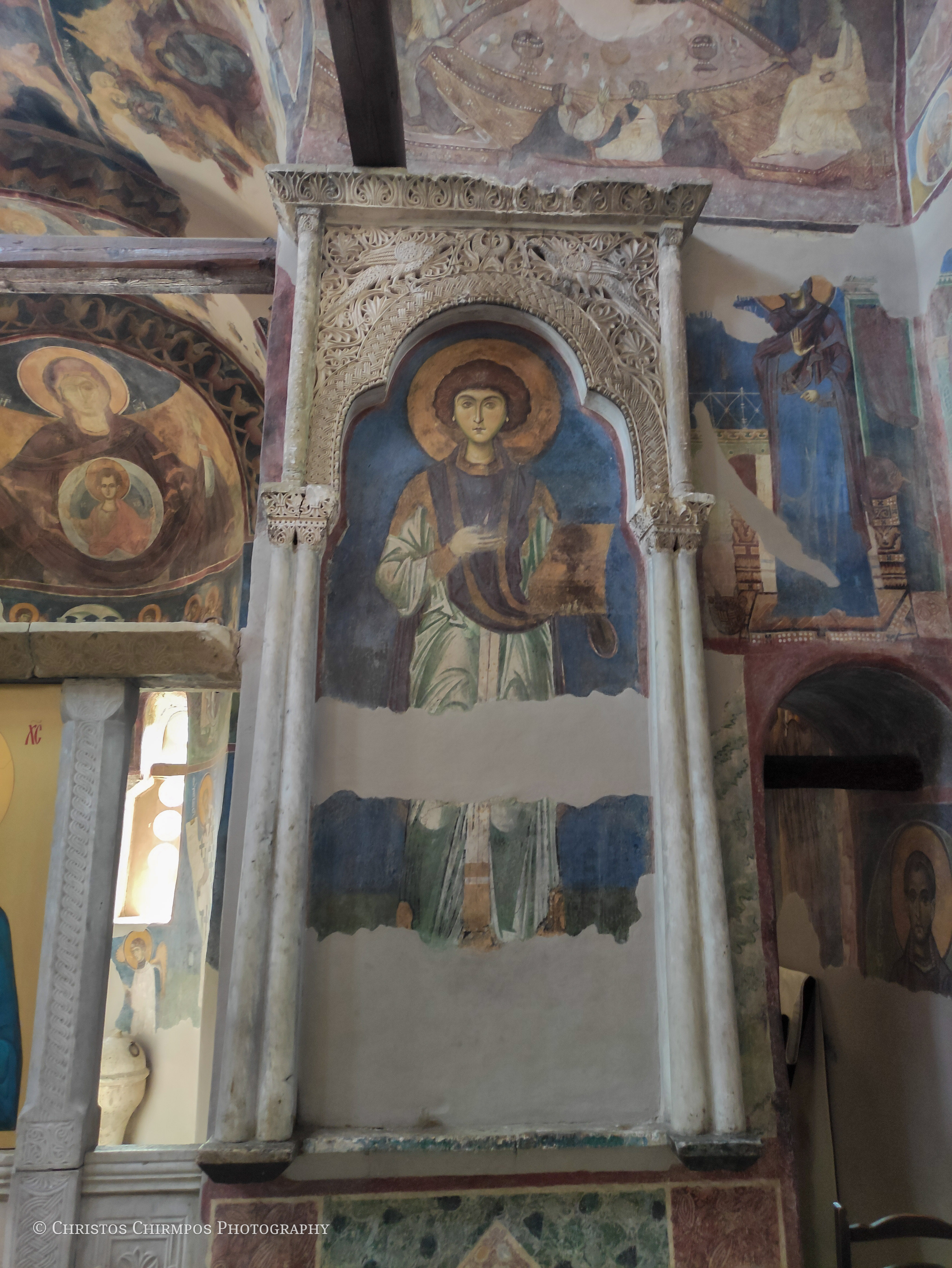 Οι νωπογραφίες της εκκλησίας είναι εξαιρετικά δείγματα της βυζαντινής τέχνης της Κομνήνειας περιόδου και είναι παρόμοιες με τις νωπογραφίες στην μονή Λατόμου (Όσιος Δαβίδ) στη Θεσσαλονίκη. Χαρακτηριστικό της περιόδου αυτής είναι οι ζωηρές χειρονομίες και κινήσεις και η απόδοση του πάθους, της έντασης και της οδύνης στα πρόσωπα. Πιο γνωστή είναι η τοιχογραφία που απεικονίζει τον Επιτάφειο Θρήνο. Κατά τη διάρκεια διαφόρων προσπαθειών αποκατάστασης, το μεγαλύτερο μέρος των τοιχογραφιών ξαναζωγραφίστηκε με τρόπο εσφαλμένο και τελικά το 1923, στη διάρκεια νέων εργασιών καθαρισμού και συντήρησης των τοιχογραφιών της εκκλησίας αποκαταστάθηκαν ορισμένες από τις αυθεντικές τοιχογραφίες του 12ου.