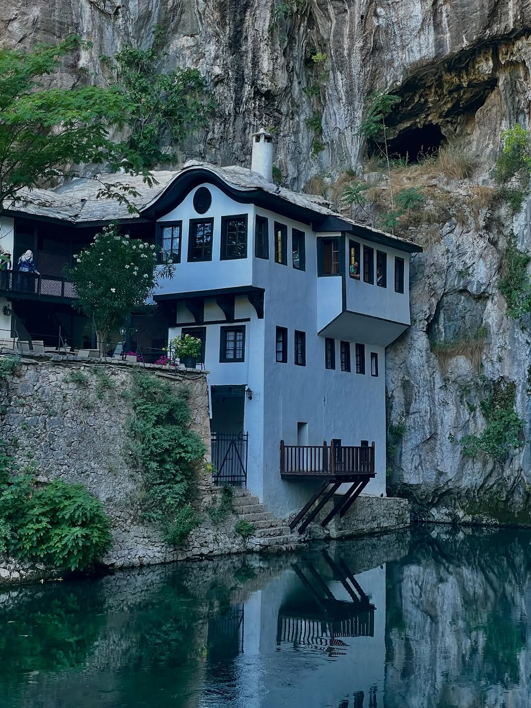 Το μοναστήρι αγκαλιάζεται από απότομα βράχια και καταπράσινα βουνά, ενώ η αυλή του — δροσερή από το νερό του ποταμού — προσφέρει μια από τις πιο γαλήνιες εικόνες της Ερζεγοβίνης. Καθισμένος στον κήπο του Tekke, με τον ήχο του νερού και τη σκιά των βράχων, καταλαβαίνεις αμέσως γιατί αυτός ο τόπος υπήρξε καταφύγιο για: Ρωμαίους ευγενείς, Οθωμανούς βεζίρηδες και καδήδες, Αξιωματικούς της Αυστροουγγρικής περιόδου, Ταξιδιώτες που αναζητούσαν δροσιά, φως και ηρεμία