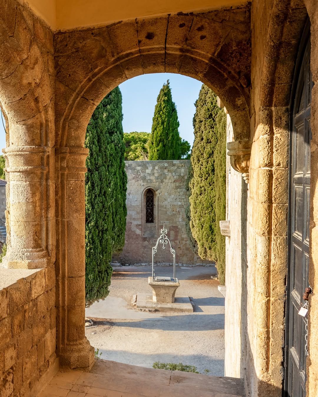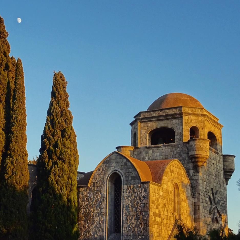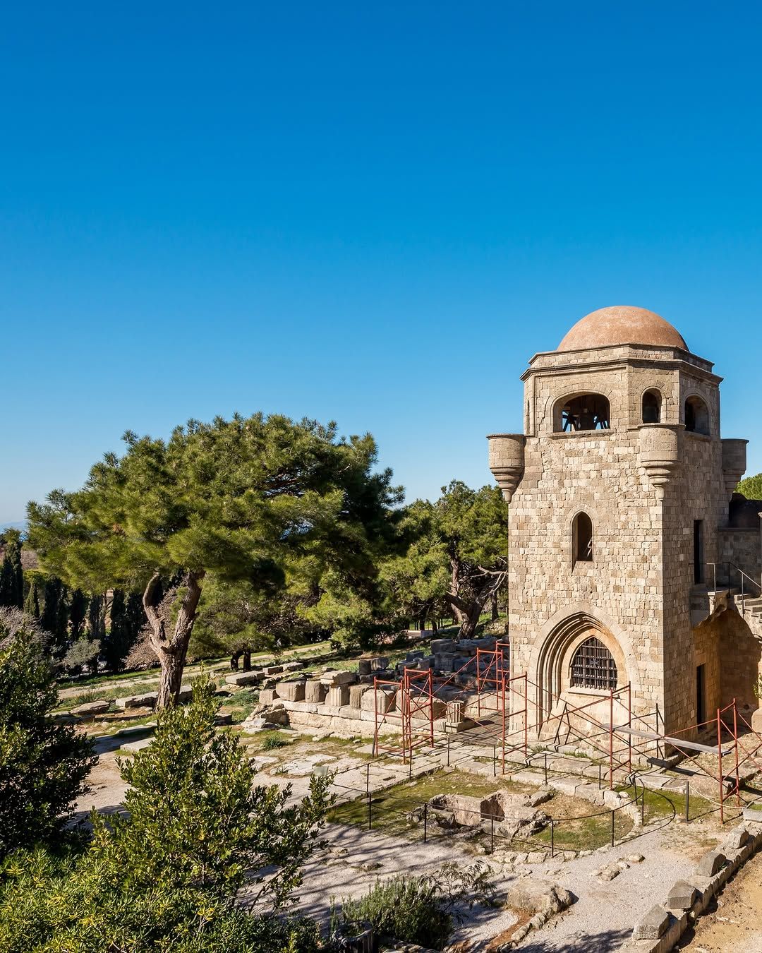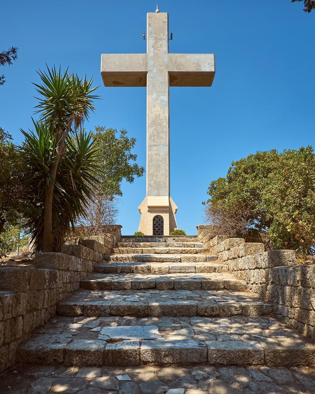Θα περπατήσουμε στο πλακόστρωτο μονοπάτι με τα κυπαρίσσια που οδηγεί στον εντυπωσιακό Σταυρό του λόφου, από όπου ανοίγεται πανοραμική θέα προς τη δυτική Ρόδο και το Αιγαίο. Στη διαδρομή θα συναντήσουμε τον ναό της Παναγίας της Φιλερήμου και τα κατάλοιπα των ιπποτικών/ιταλικών παρεμβάσεων, που κάνουν το σημείο ξεχωριστό για όσους αγαπούν ιστορία και φωτογραφία. Ο χώρος συνδυάζει μοναδικά τη βυζαντινή, ιπποτική και ιταλική κληρονομιά του νησιού.