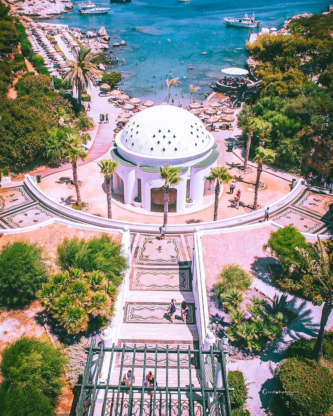 Οι πηγές ήταν γνωστές από την αρχαιότητα για τις θεραπευτικές τους ιδιότητες και αναπτύχθηκαν ιδιαίτερα την ιταλική περίοδο. Σήμερα, το αναστηλωμένο συγκρότημα ξεχωρίζει για την αρχιτεκτονική του (θόλοι, στοές, μωσαϊκά) και την ατμόσφαιρα του χώρου δίπλα στη θάλασσα.