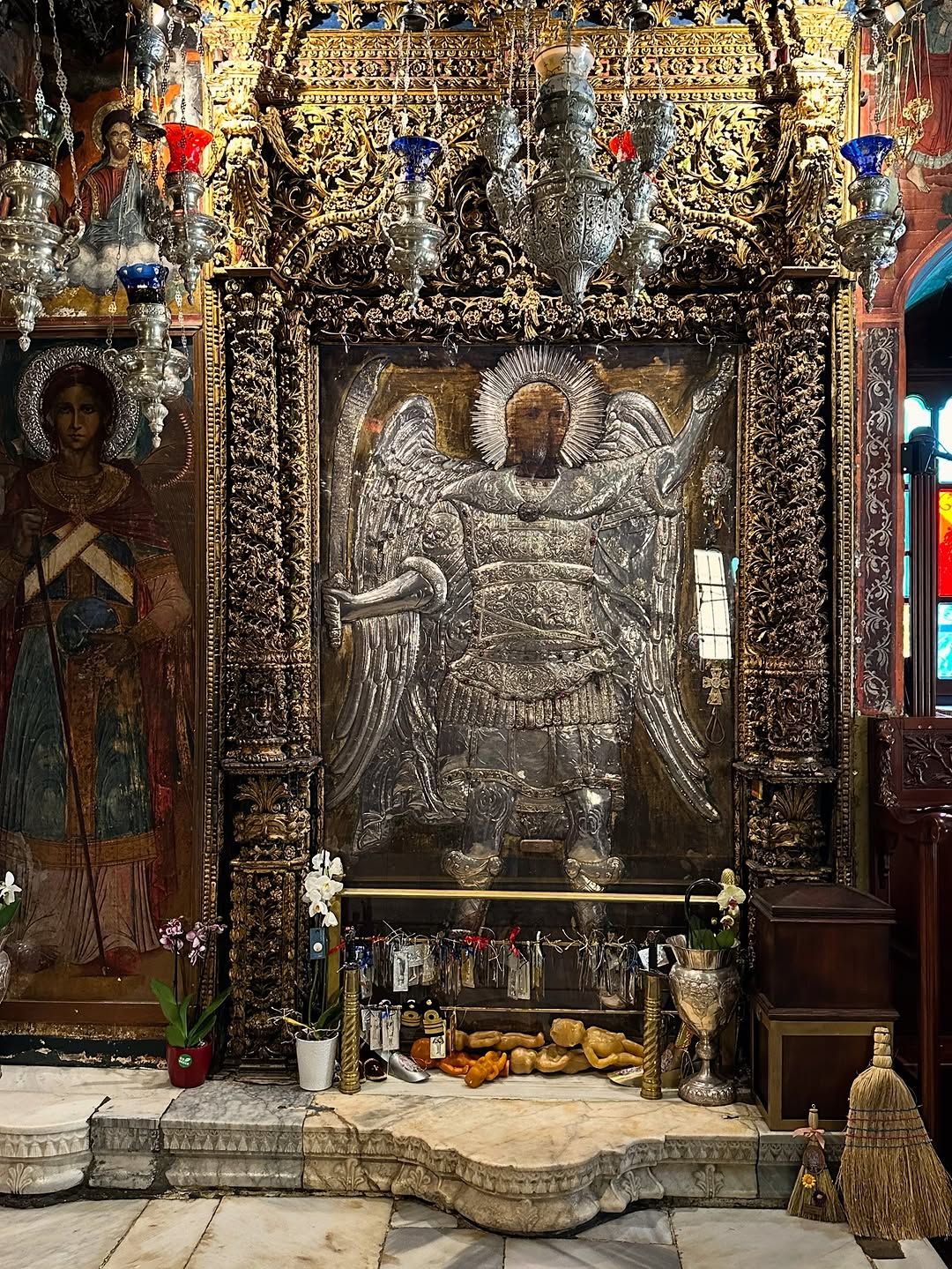 Η Μονή του Ταξιάρχη Μιχαήλ θεωρείται ένα από τα σημαντικότερα ορθόδοξα προσκυνήματα στο Αιγαίο. Θα έχουμε περίπου 1 ώρα για προσκύνημα και επίσκεψη στον μοναστηριακό χώρο: τον εντυπωσιακό ναό, το καμπαναριό, την αυλή με την ιδιαίτερη αρχιτεκτονική, καθώς και το μικρό μουσείο/εκθετήριο (εφόσον είναι ανοικτό) με αφιερώματα και κειμήλια που συνδέονται με την παράδοση του Πανορμίτη.